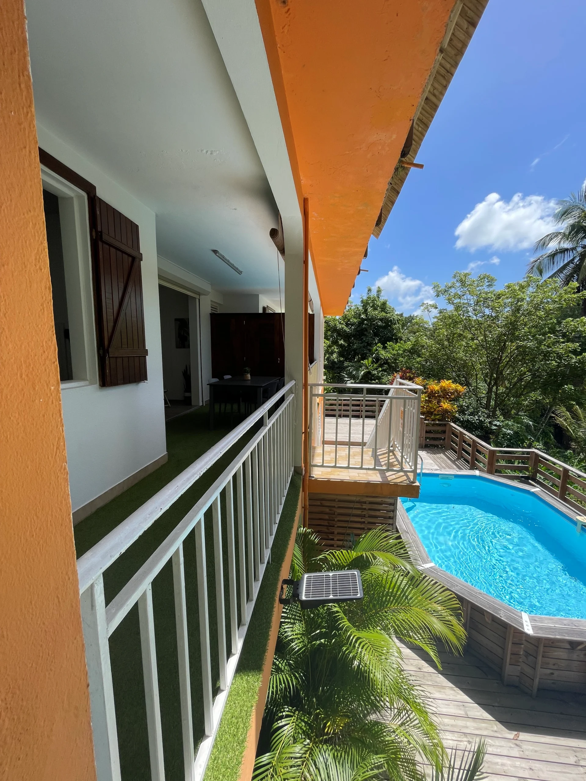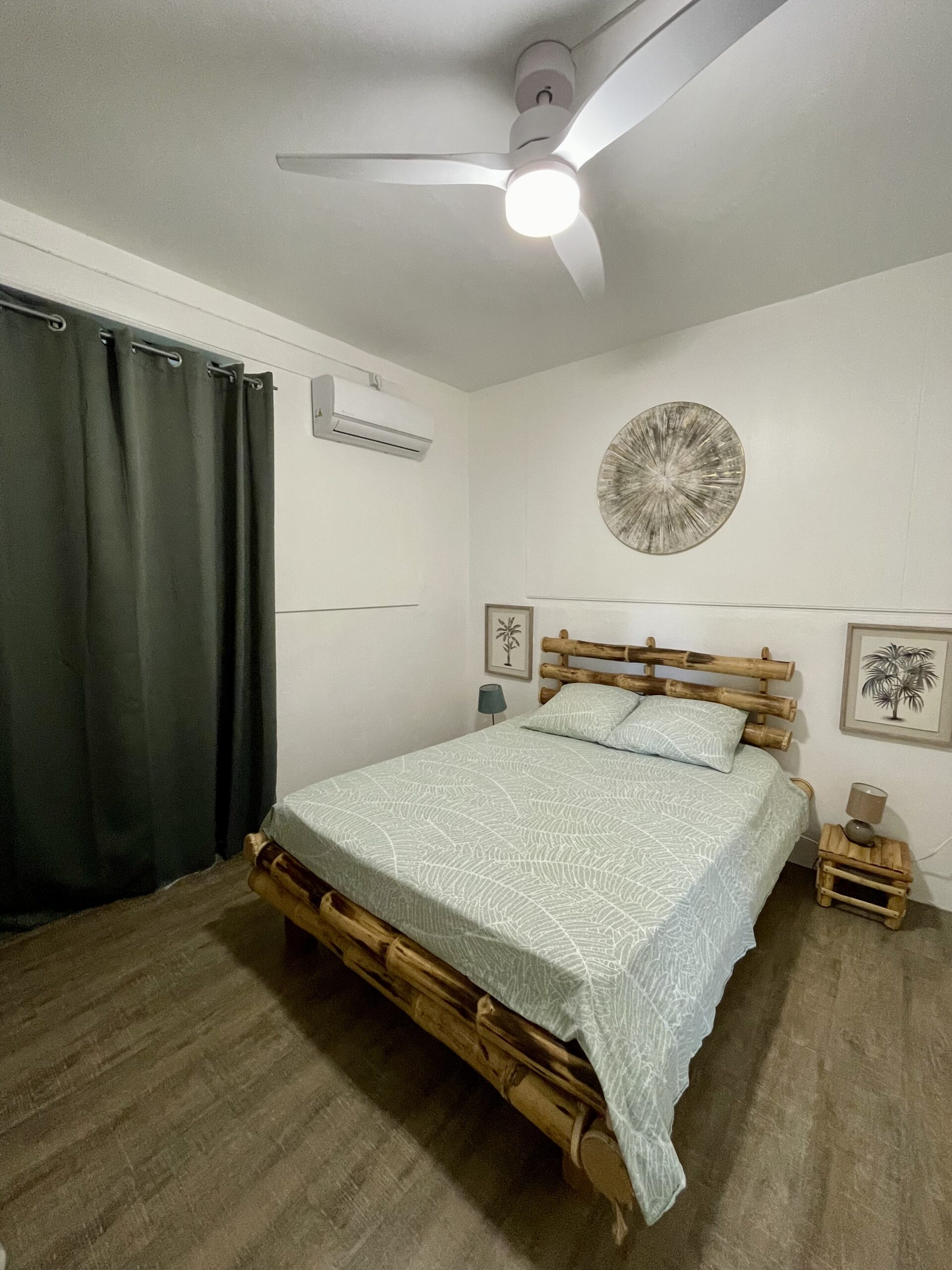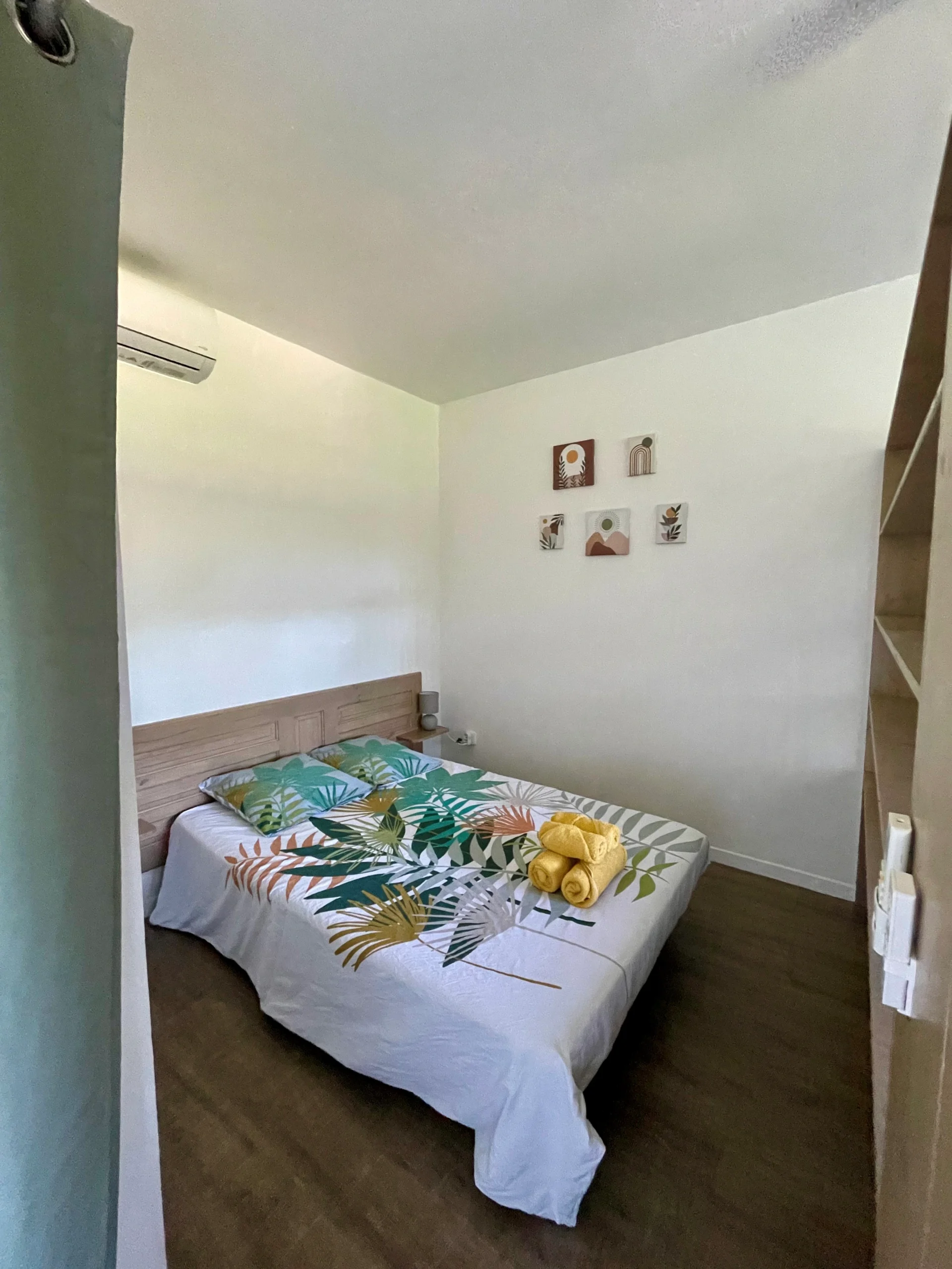 Ti Lodge est un gîte spacieux pensé pour accueillir 2 à 4 personnes avec tout le confort nécessaire. Il dispose de deux chambres, d’une salle de bain et d’un espace de vie agréable, idéal pour les séjours de trois nuits minimum. Plus grand et plus confortable, il convient parfaitement aux familles ou aux voyageurs souhaitant profiter d’un cadre reposant à Sainte-Anne, avec accès à la piscine partagée.